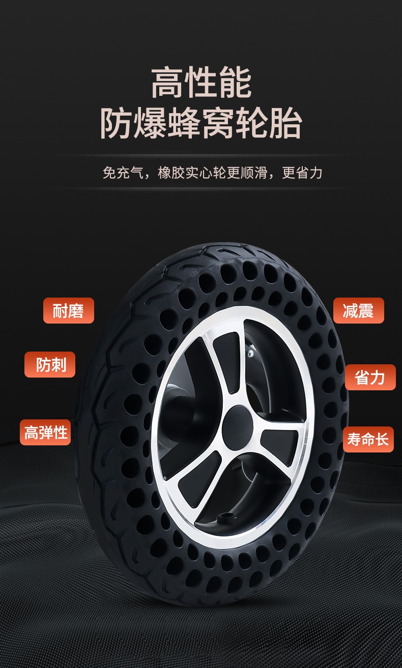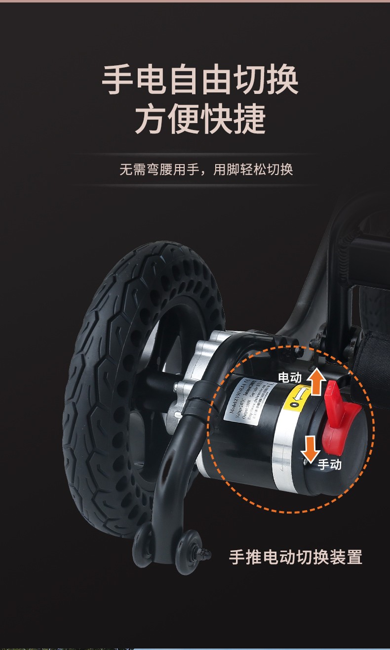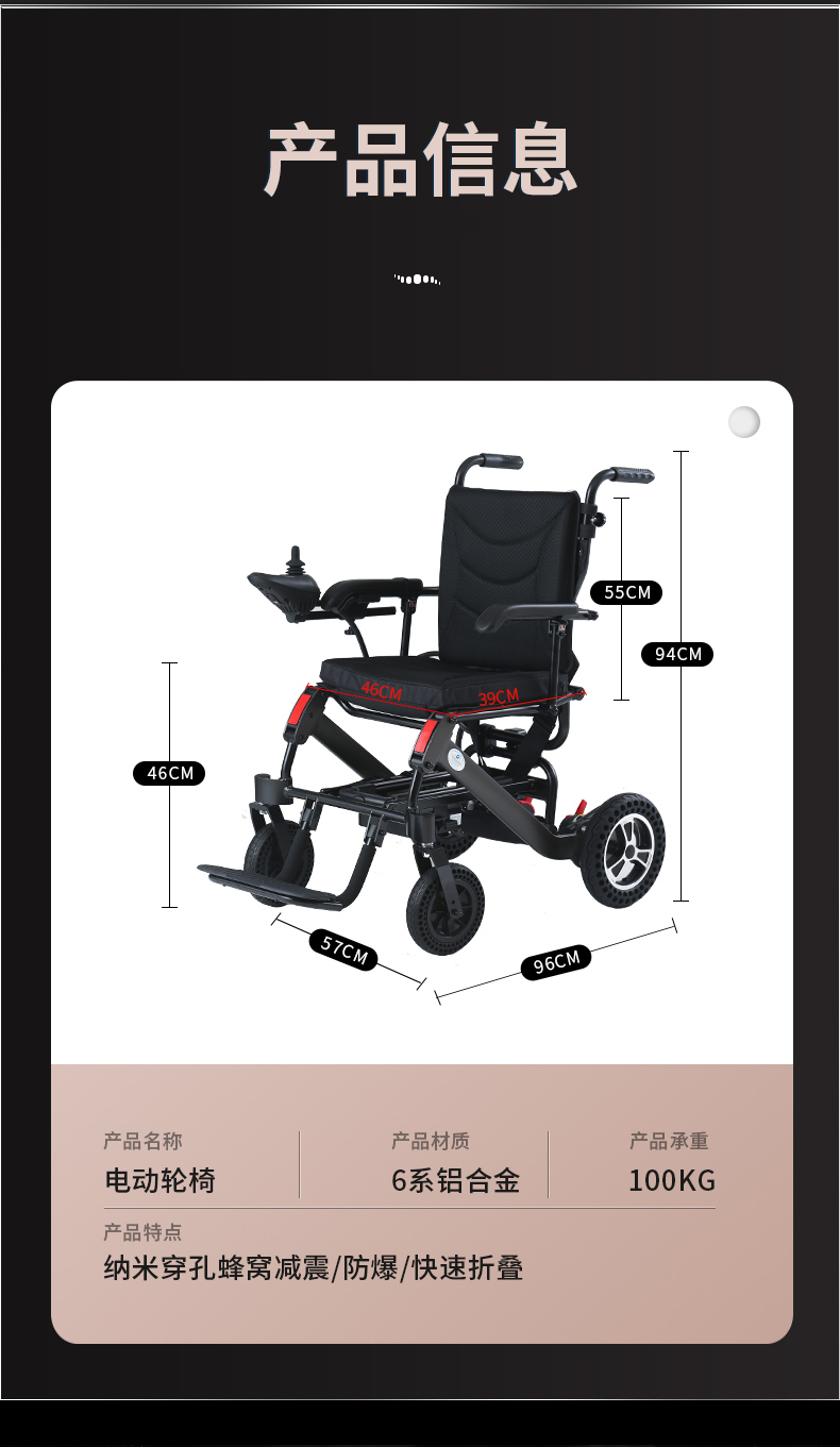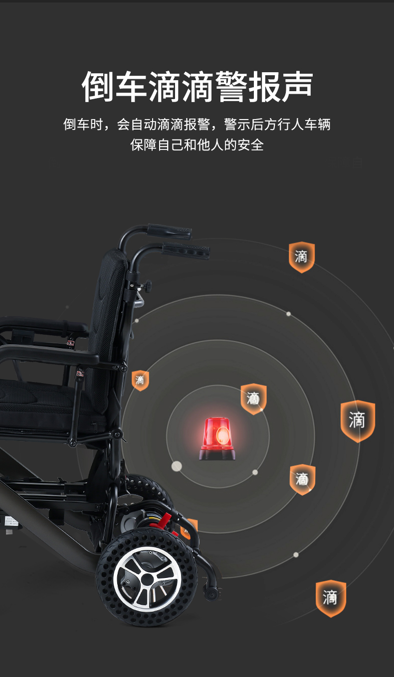輕便折疊電動(dòng)輪椅車DY41,采用鋁合金材質(zhì)四輪蜂窩輪胎,車重僅24公斤折疊起來可以像行李箱一樣拖行,可放入后備箱